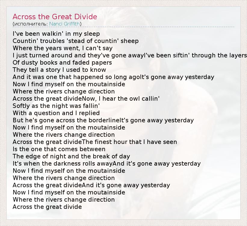 А как ты думаешь, о чем песня "Across the Great Divide" ?