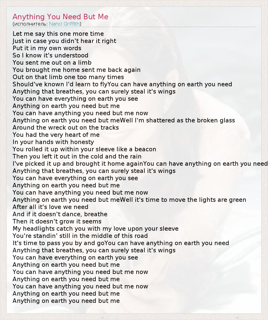 А как ты думаешь, о чем песня "Anything You Need But Me" ?
