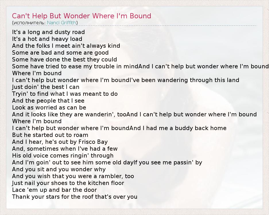 А как ты думаешь, о чем песня "Can't Help But Wonder Where I'm Bound" ?