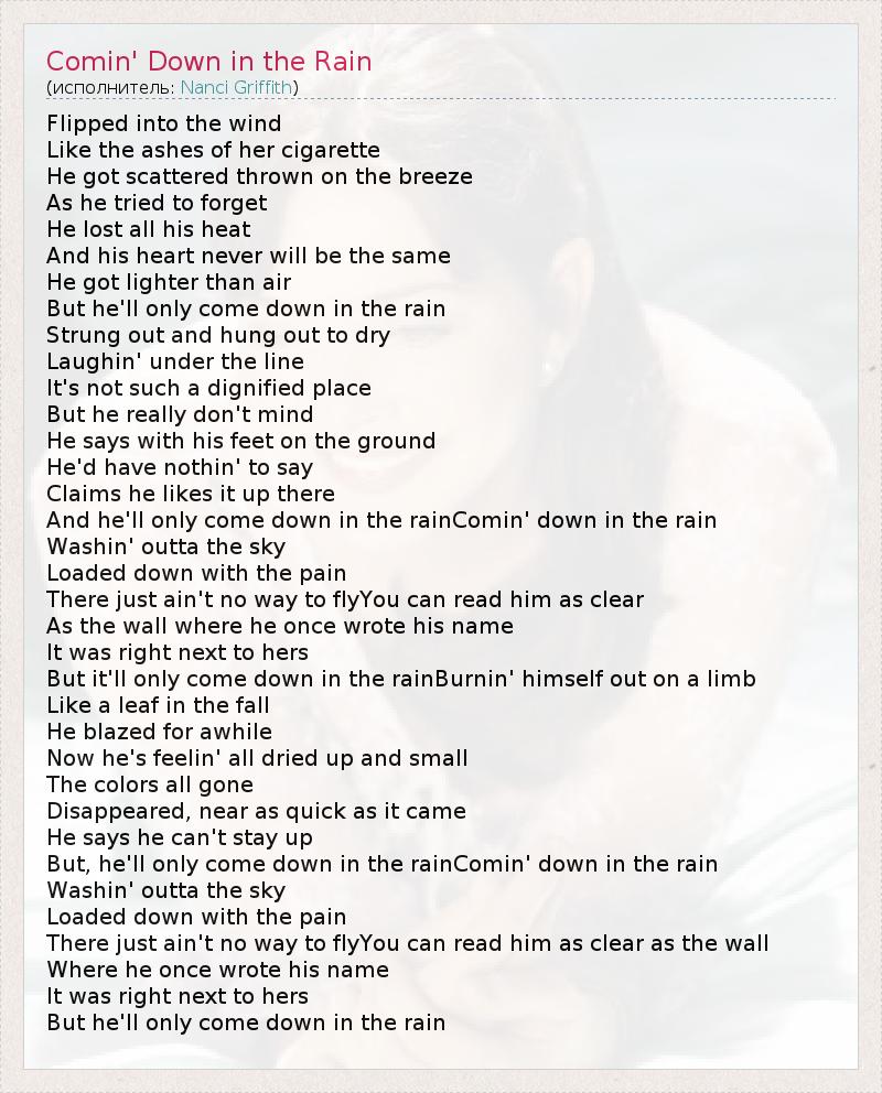 А как ты думаешь, о чем песня "Comin' Down in the Rain" ?