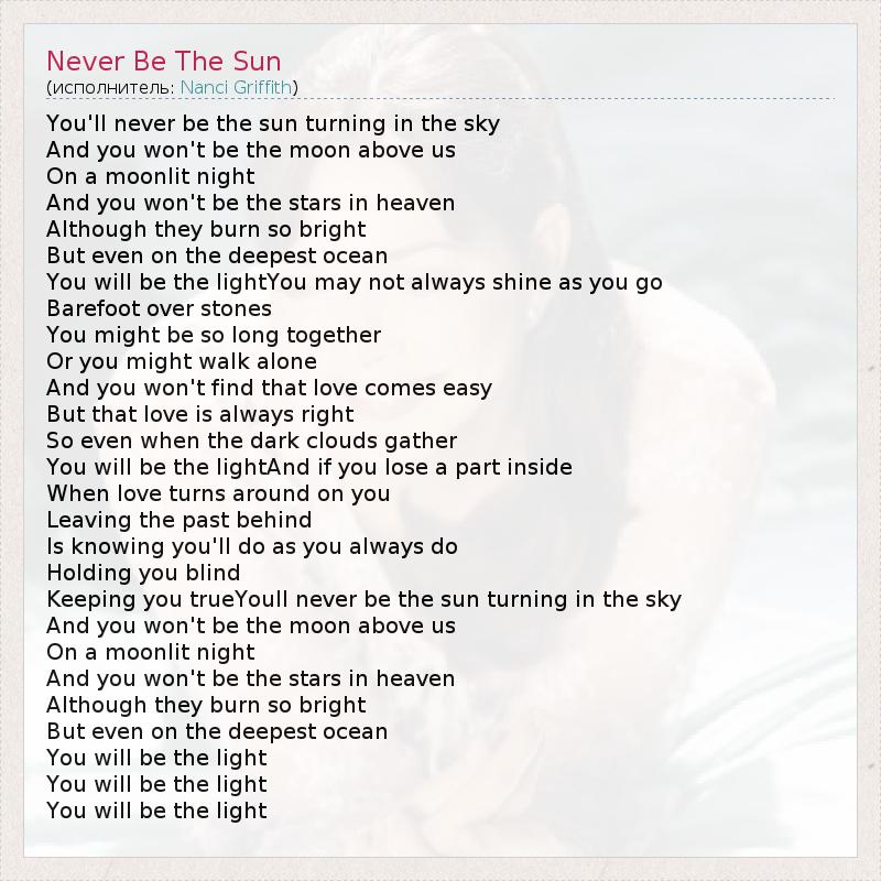 Keeping you trueYoull never be the sun turning in the sky