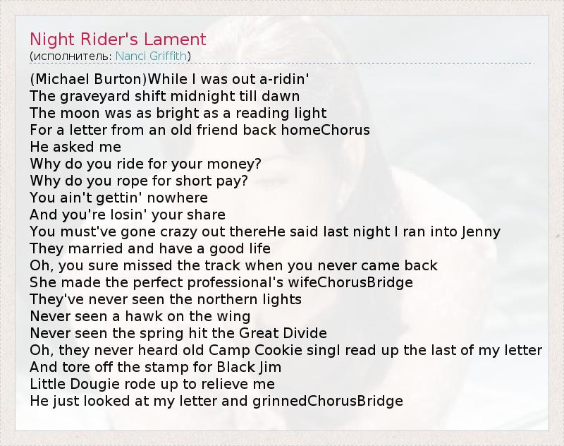 А как ты думаешь, о чем песня "Night Rider's Lament" ?