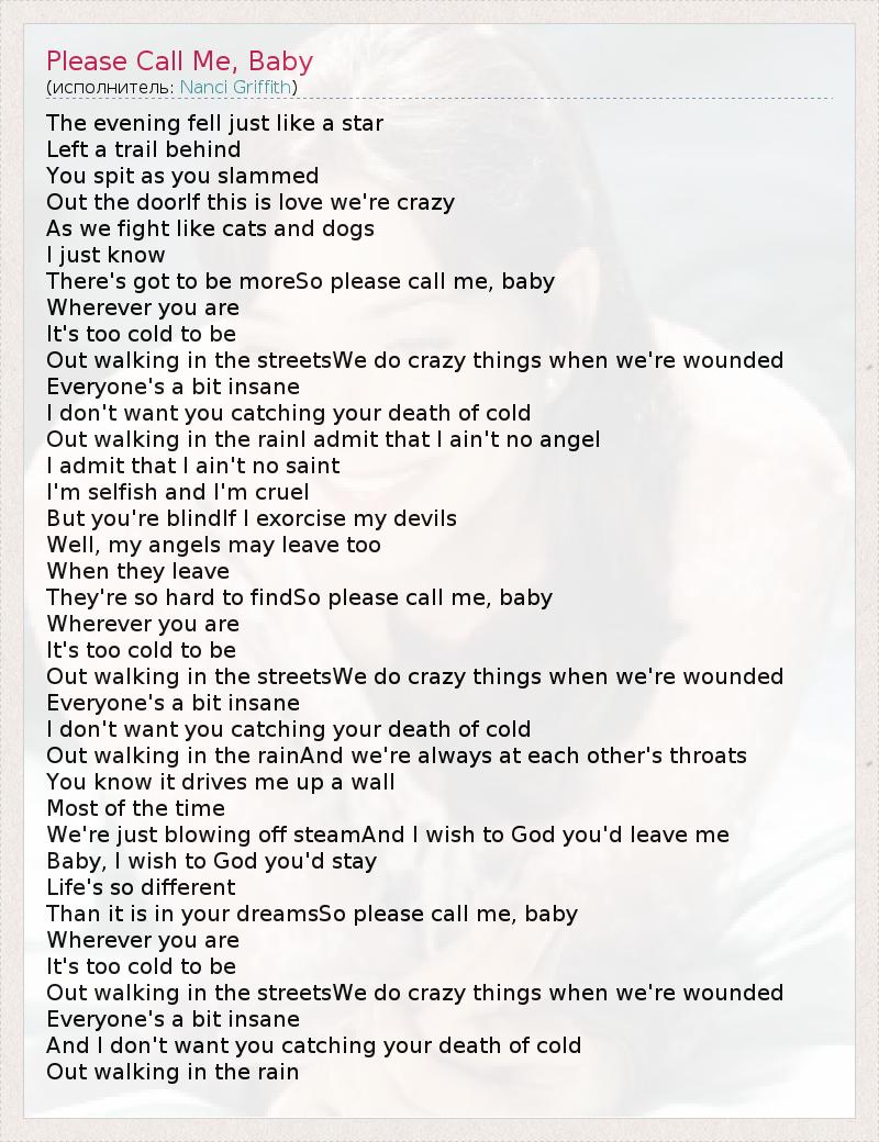 А как ты думаешь, о чем песня "Please Call Me, Baby" ?