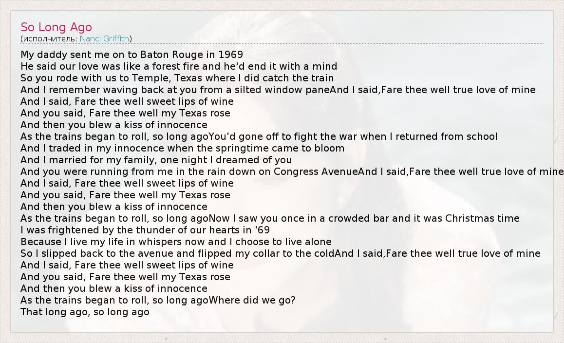 А как ты думаешь, о чем песня "So Long Ago" ?
