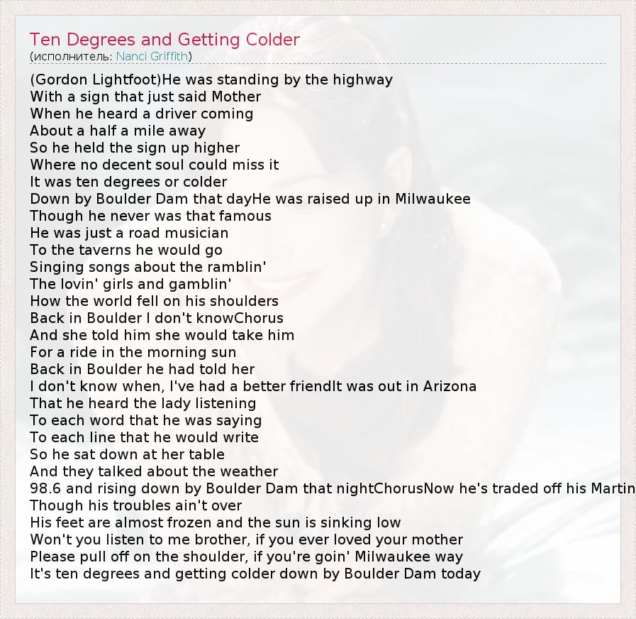 ГлавнаяИсполнителиNanci GriffithTen Degrees and Getting Colder