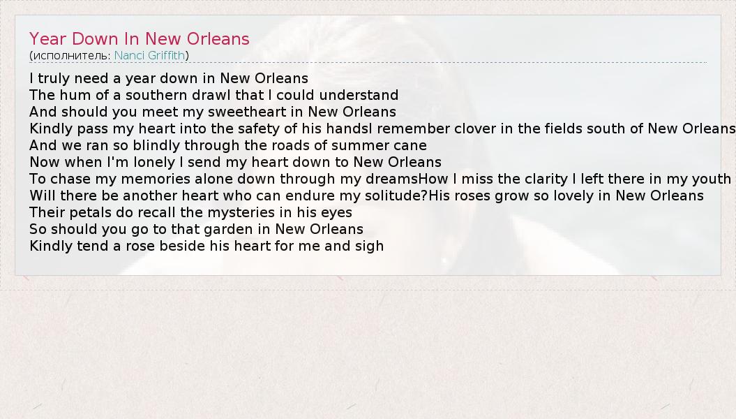 А как ты думаешь, о чем песня "Year Down In New Orleans" ?