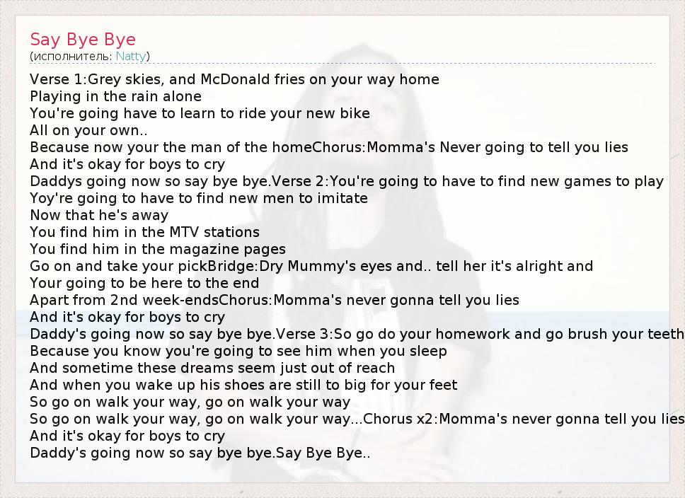 А как ты думаешь, о чем песня "Say Bye Bye" ?