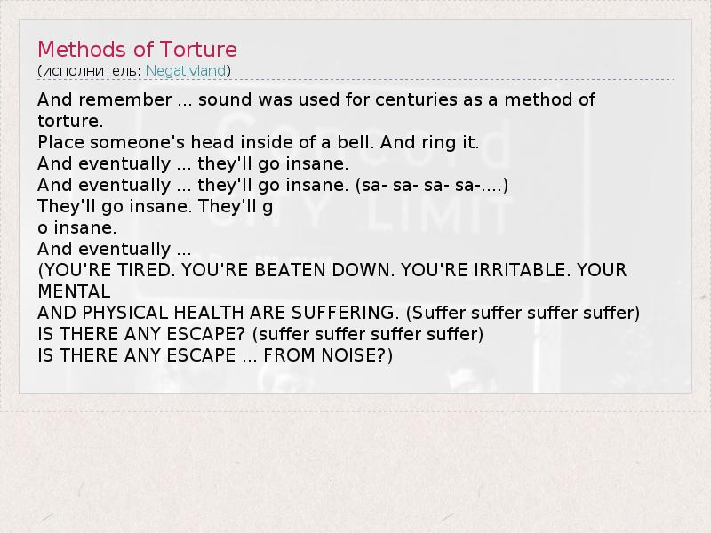 А как ты думаешь, о чем песня "Methods of Torture" ?