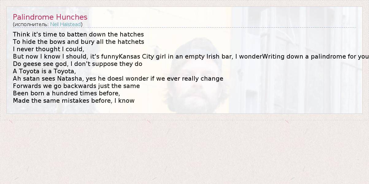 А как ты думаешь, о чем песня "Palindrome Hunches" ?