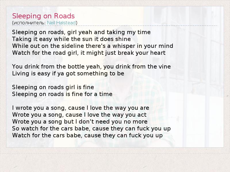 А как ты думаешь, о чем песня "Sleeping on Roads" ?