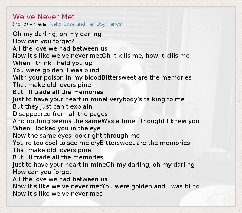 А как ты думаешь, о чем песня "We've Never Met" ?