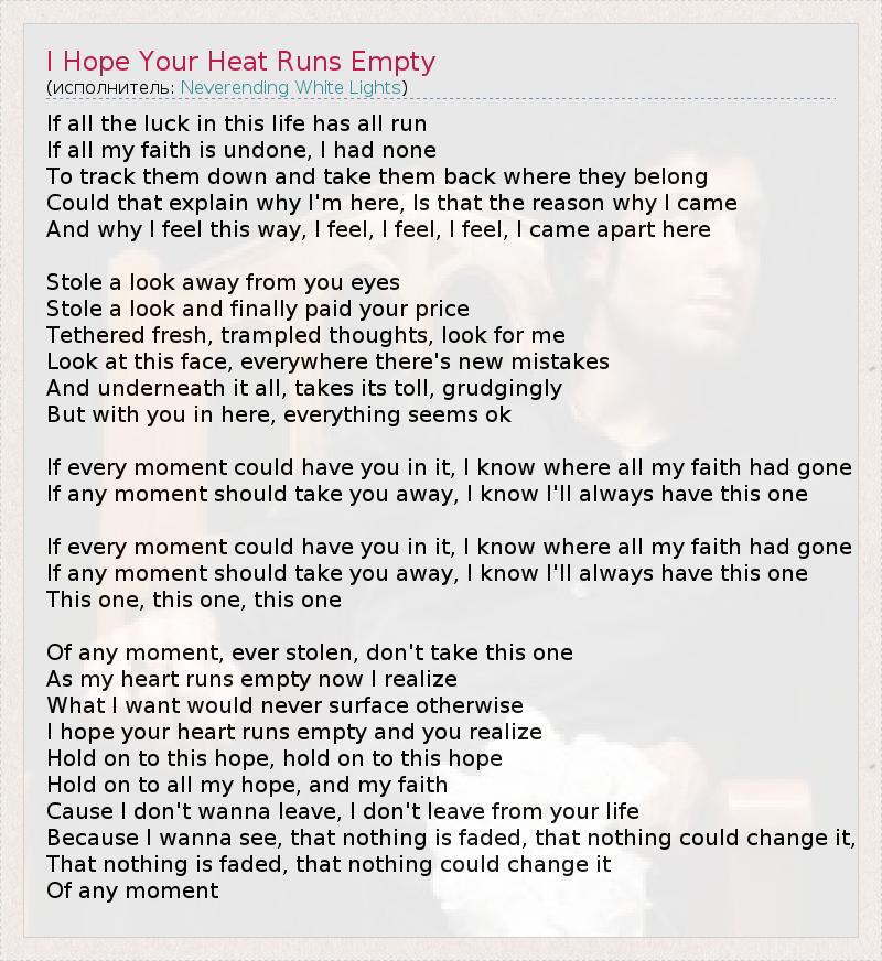А как ты думаешь, о чем песня "I Hope Your Heat Runs Empty" ?