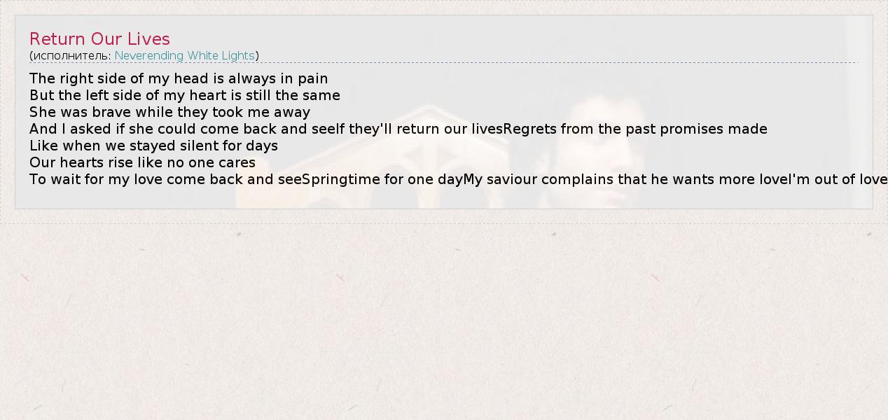 А как ты думаешь, о чем песня "Return Our Lives" ?