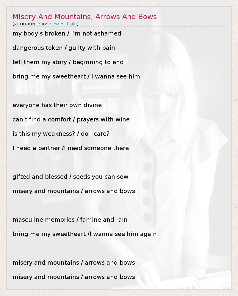 А как ты думаешь, о чем песня "Misery And Mountains, Arrows And Bows" ?