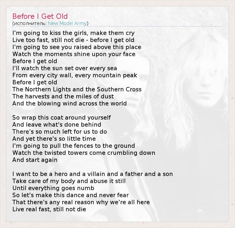 А как ты думаешь, о чем песня "Before I Get Old" ?