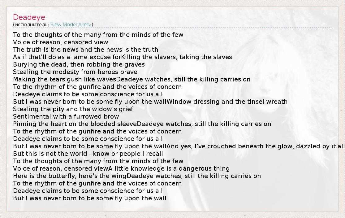 А как ты думаешь, о чем песня "Deadeye" ?