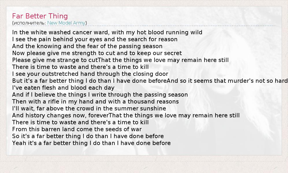А как ты думаешь, о чем песня "Far Better Thing" ?