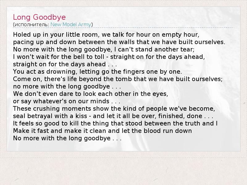 А как ты думаешь, о чем песня "Long Goodbye" ?