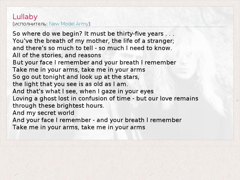 А как ты думаешь, о чем песня "Lullaby" ?