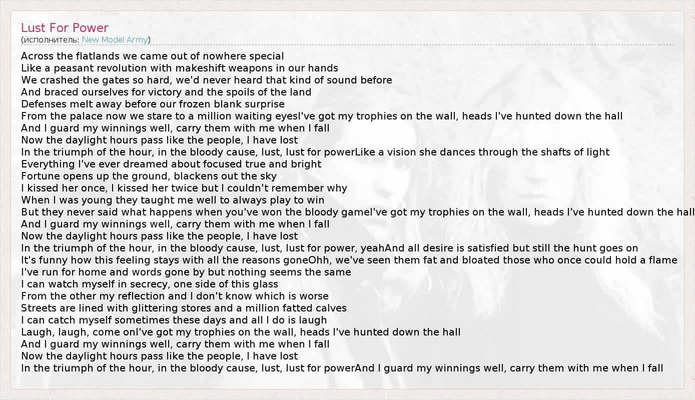 А как ты думаешь, о чем песня "Lust For Power" ?