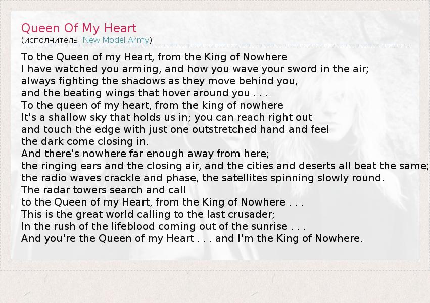 А как ты думаешь, о чем песня "Queen Of My Heart" ?