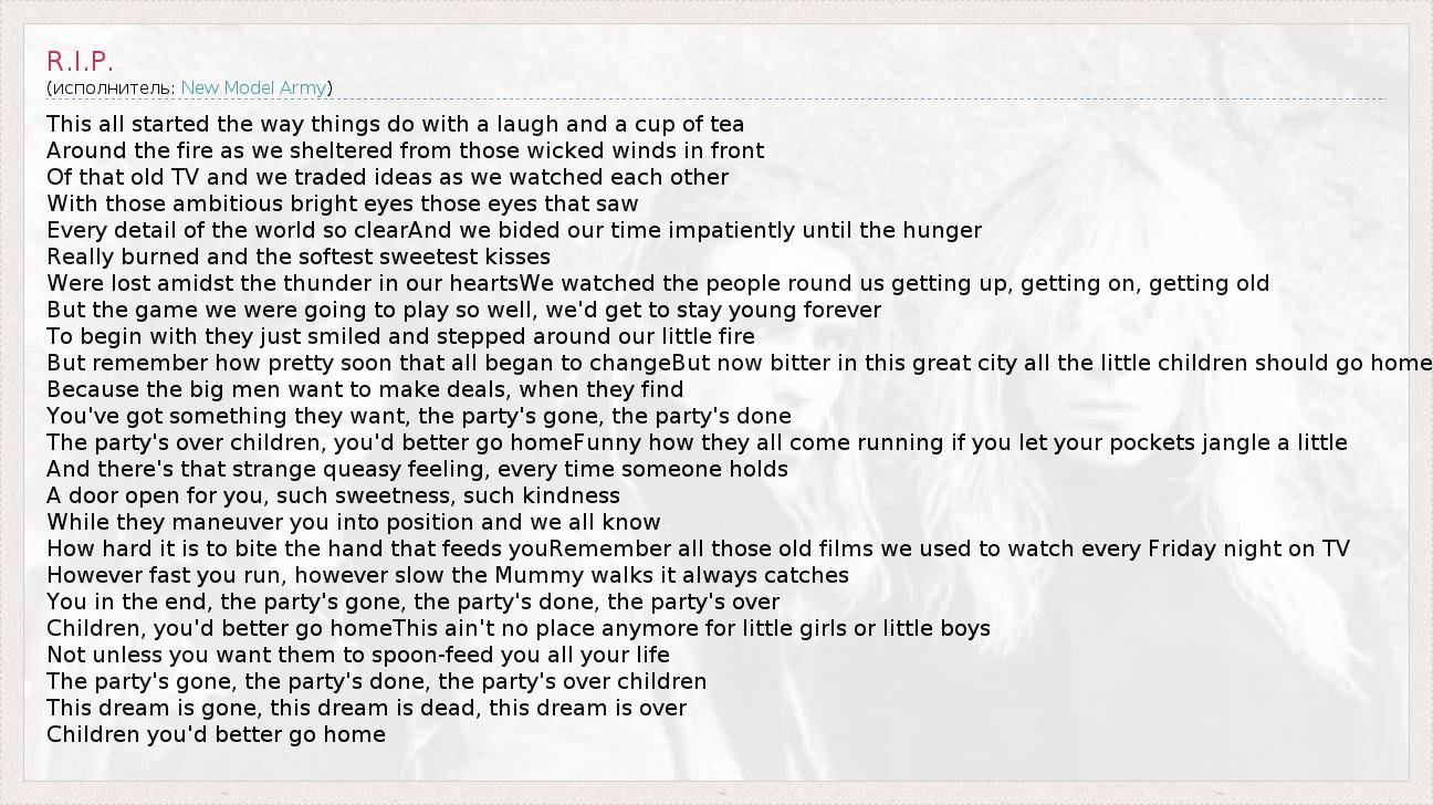 А как ты думаешь, о чем песня "R.I.P." ?