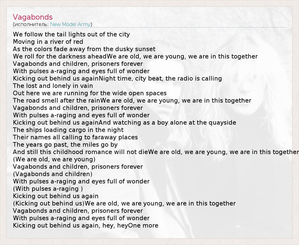 А как ты думаешь, о чем песня "Vagabonds" ?