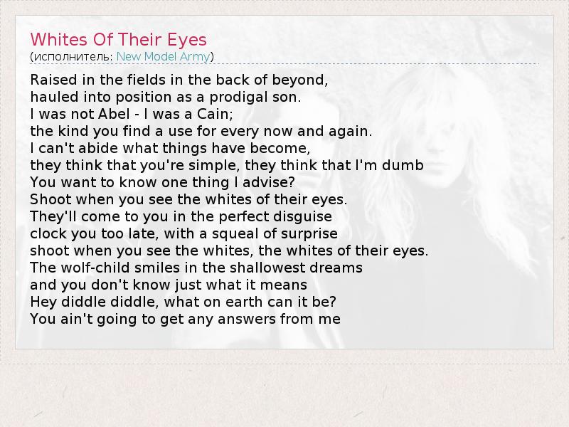 А как ты думаешь, о чем песня "Whites Of Their Eyes" ?