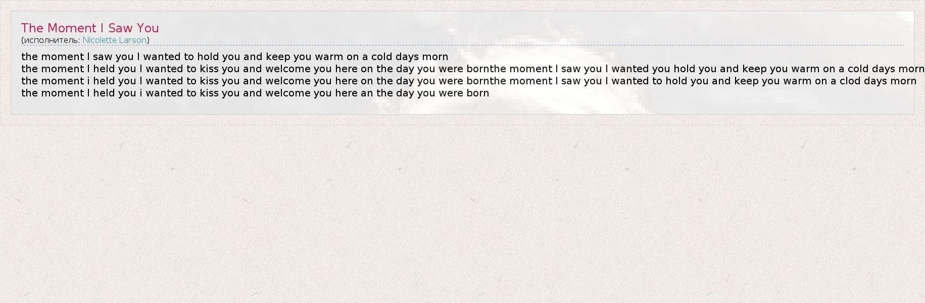 the moment I held you I wanted to kiss you and welcome you here on the day you were bornthe moment I saw you I wanted you hold you and keep you warm on a cold days morn