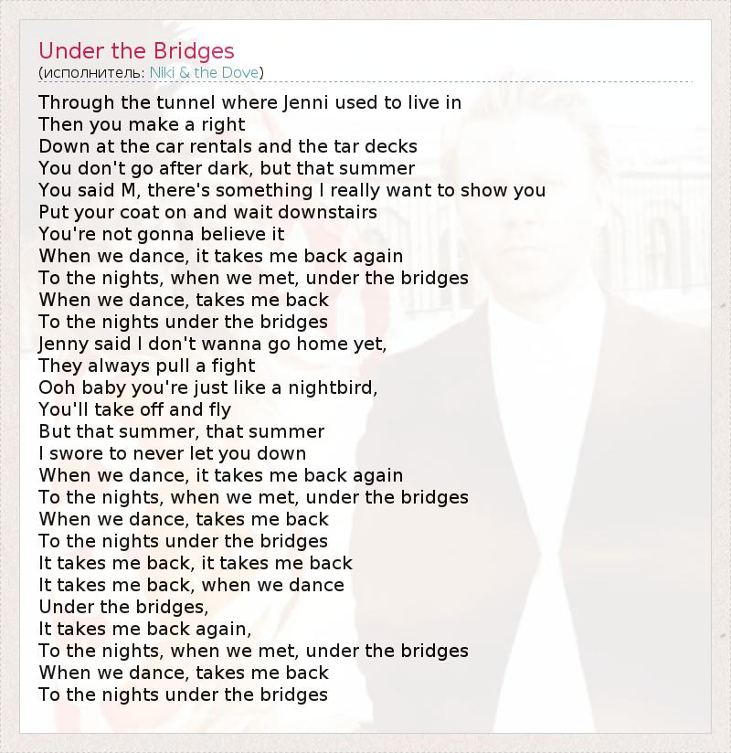 А как ты думаешь, о чем песня "Under the Bridges" ?
