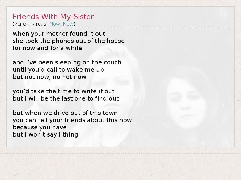 А как ты думаешь, о чем песня "Friends With My Sister" ?