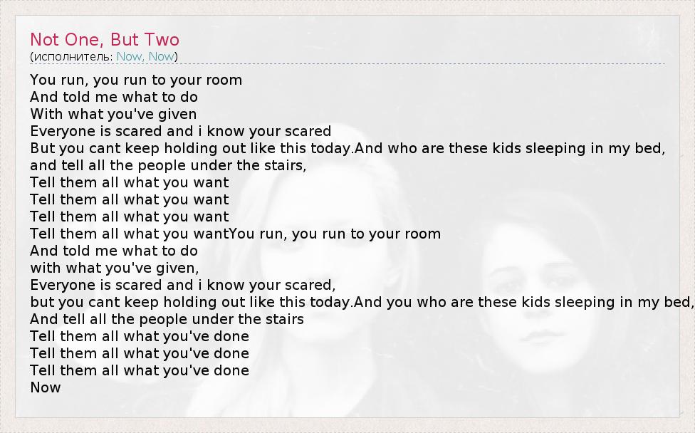 А как ты думаешь, о чем песня "Not One, But Two" ?