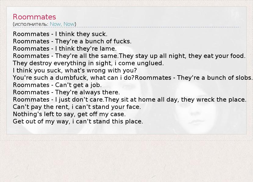 А как ты думаешь, о чем песня "Roommates" ?