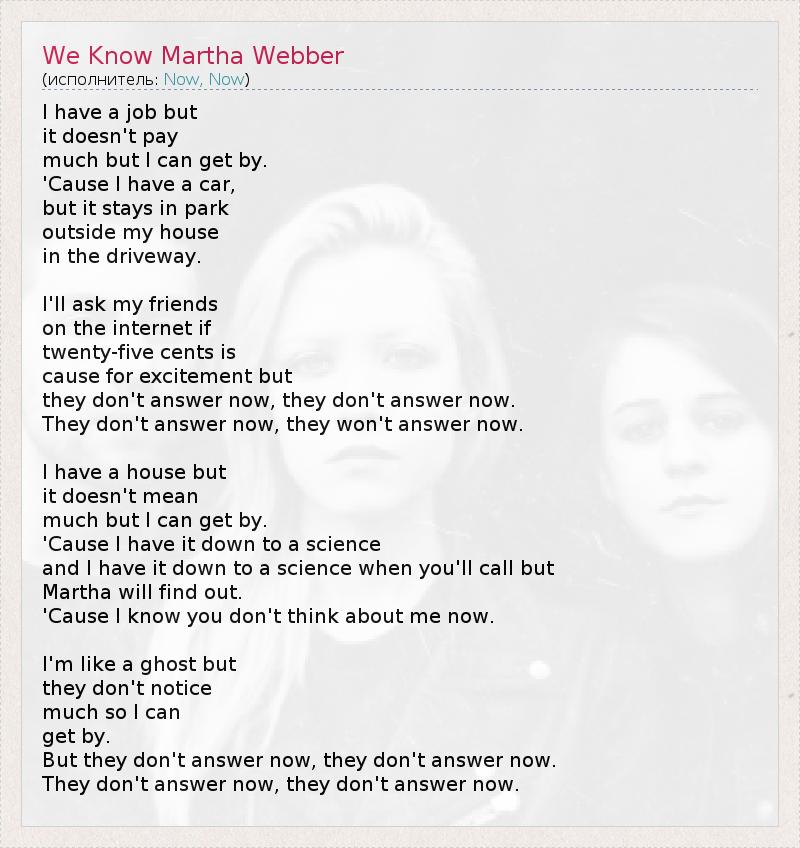 А как ты думаешь, о чем песня "We Know Martha Webber" ?
