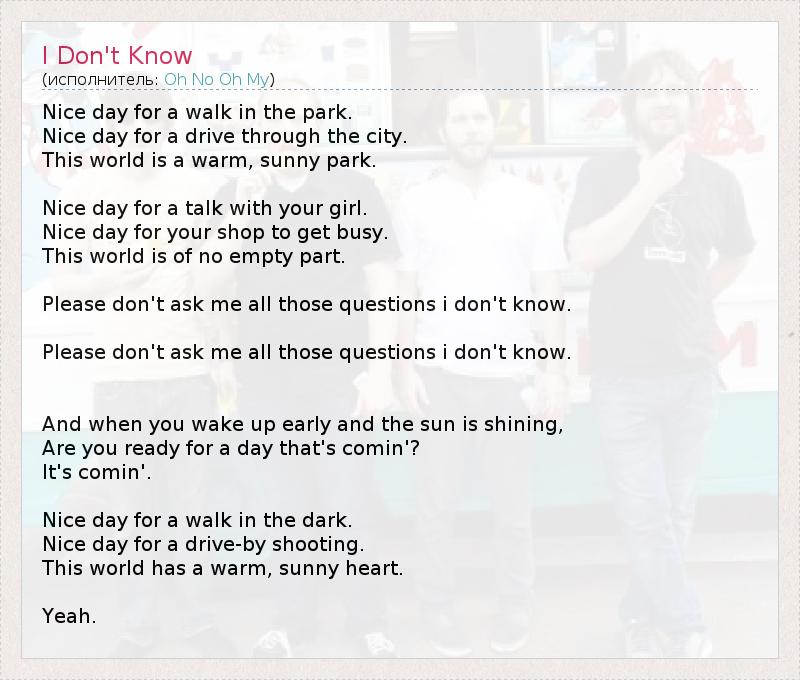 А как ты думаешь, о чем песня "I Don't Know" ?
