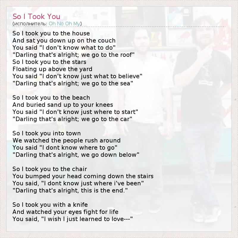 А как ты думаешь, о чем песня "So I Took You" ?