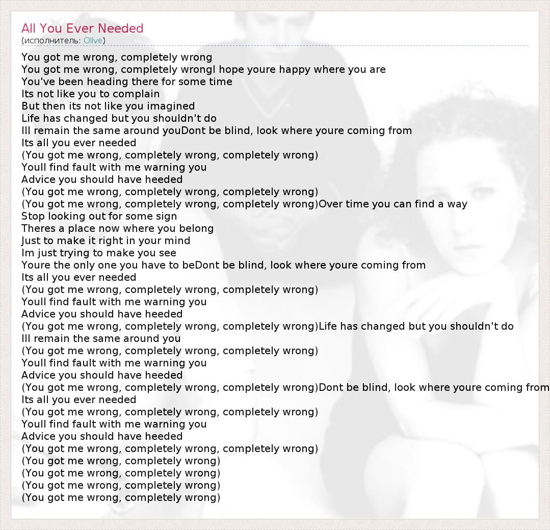 ГлавнаяИсполнителиOliveAll You Ever Needed