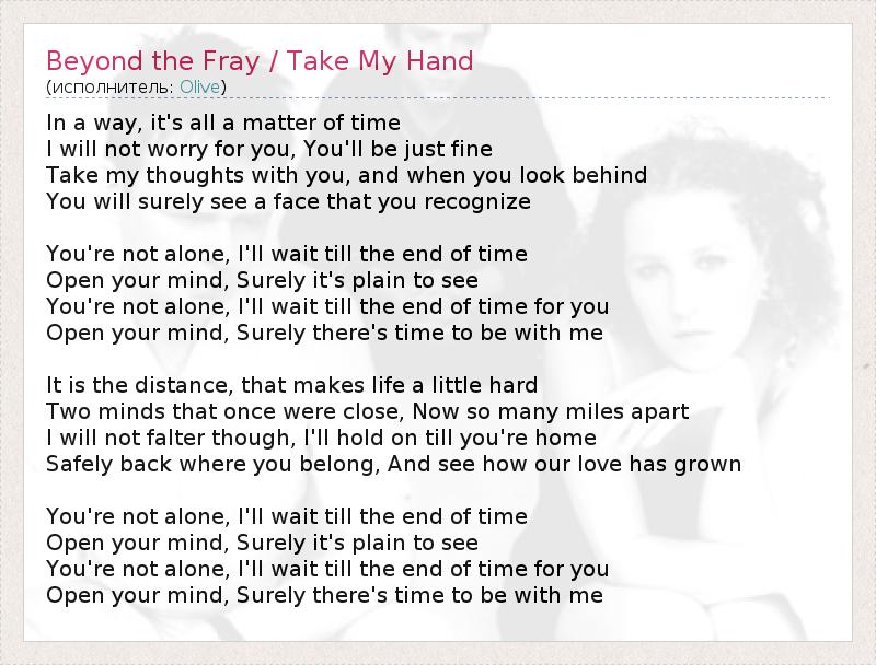 ГлавнаяИсполнителиOliveBeyond the Fray / Take My Hand