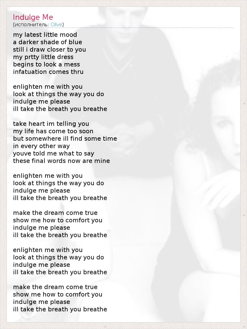 А как ты думаешь, о чем песня "Indulge Me" ?