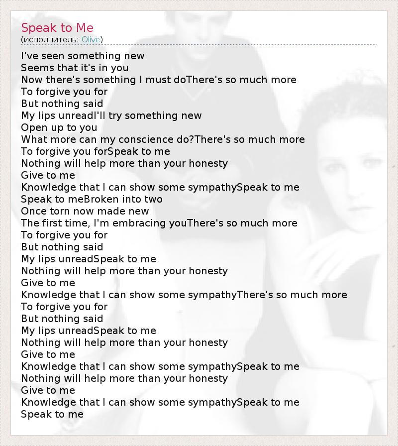 To forgive you forSpeak to me