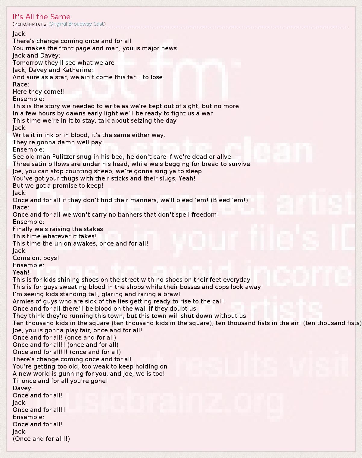 А как ты думаешь, о чем песня "It's All the Same" ?
