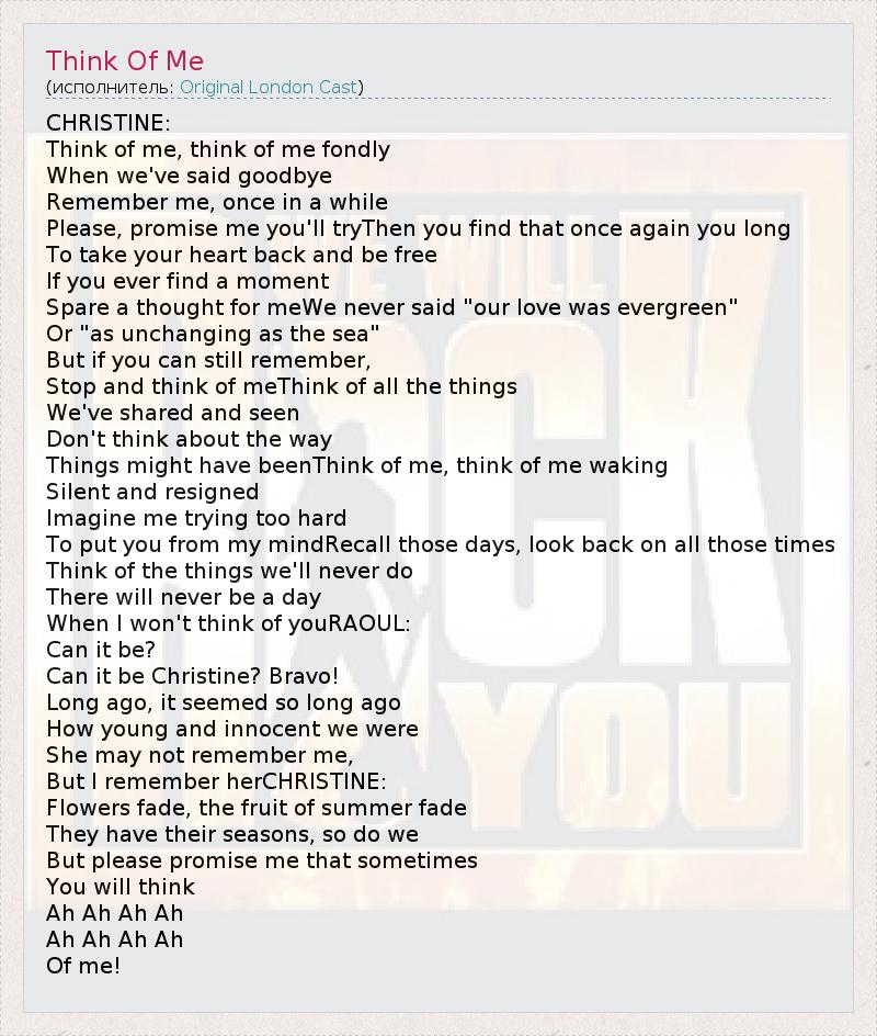 А как ты думаешь, о чем песня "Think Of Me" ?