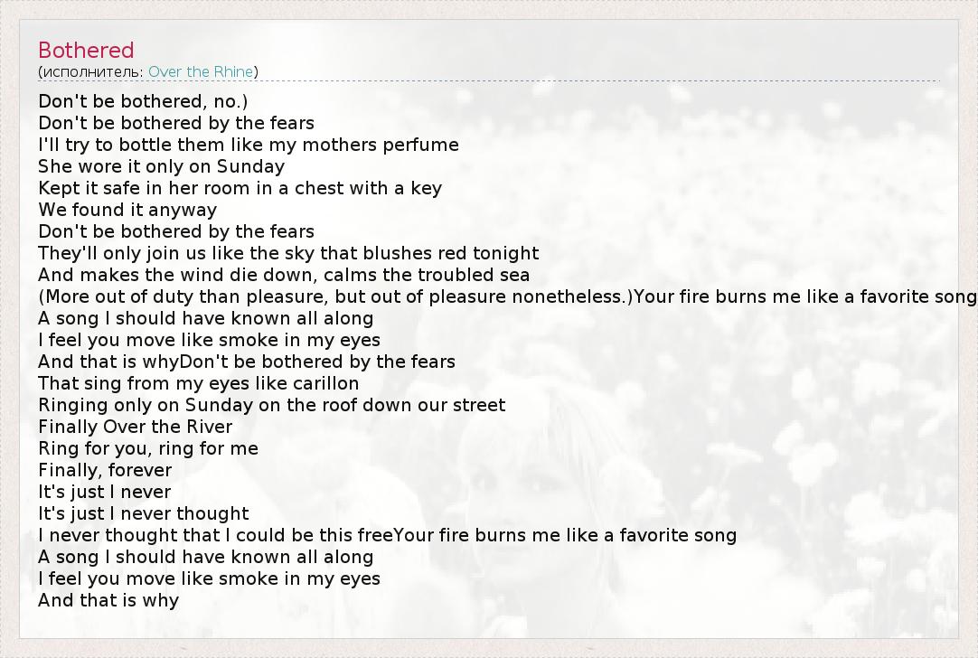 А как ты думаешь, о чем песня "Bothered" ?