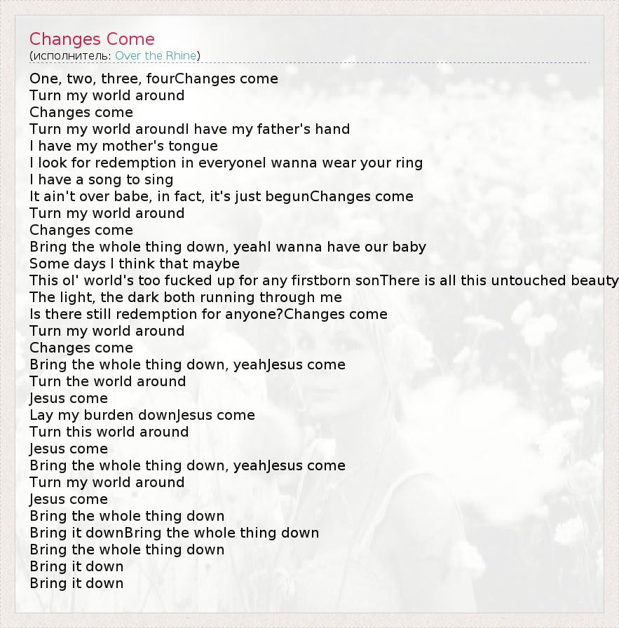 Это интересно:Over the Rhine is an Ohio-based musical band, the core of which is the husband-and-wife team of bassist/pianist/guitarist Linford Detweiler and vocalist/guitarist Karin Bergquist. Originally a quartet with guitarist Ric Hordinski and drummer Brian Kelley, Over the Rhine is now solely the duo of Detweiler and Bergquist with "hired guns" on albums and tours. Linford and Karin were not married at the foundation of the band. The band's namesake and place of origin is the Cincinnati, Ohio neighborhood Over-the-Rhine. Karin attended school in Barnesville, Ohio and graduated from Barnesville High School in 1984. She then went to Malone College, located in Canton, Ohio, where she met Linford.... продолжение