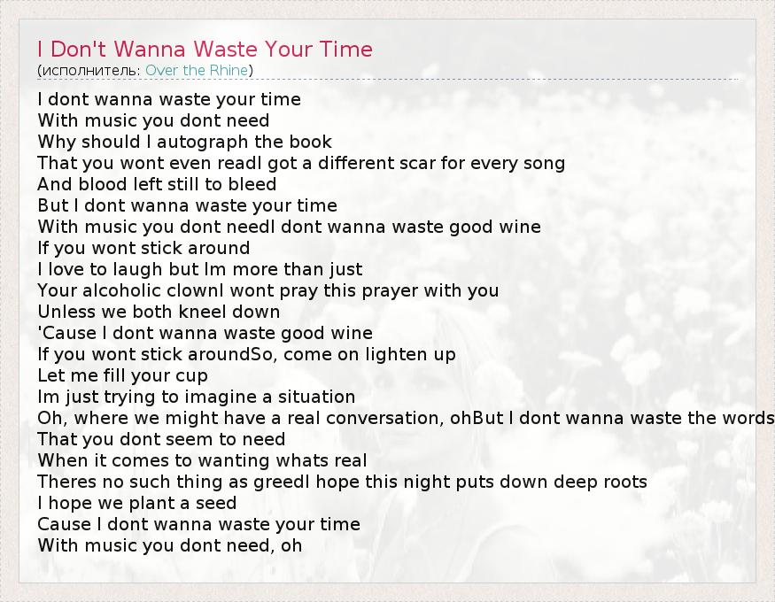 А как ты думаешь, о чем песня "I Don't Wanna Waste Your Time" ?