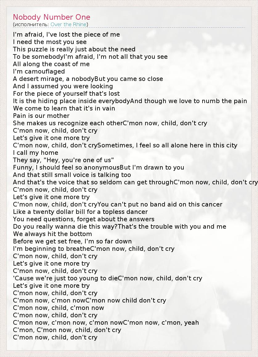 А как ты думаешь, о чем песня "Nobody Number One" ?