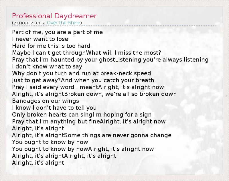 А как ты думаешь, о чем песня "Professional Daydreamer" ?