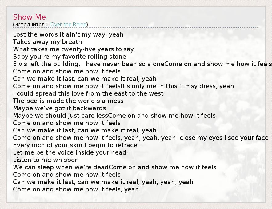 А как ты думаешь, о чем песня "Show Me" ?