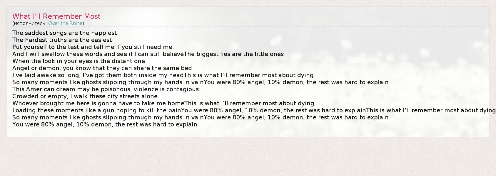 А как ты думаешь, о чем песня "What I'll Remember Most" ?