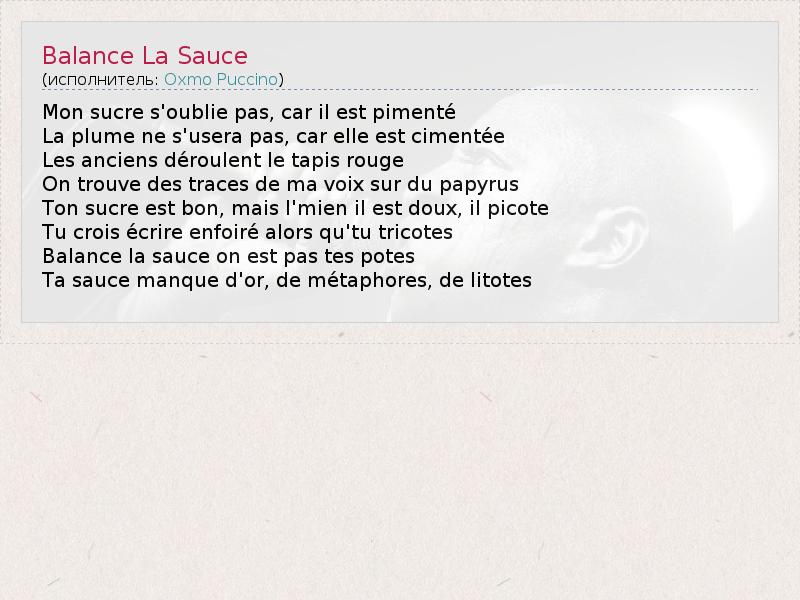 А как ты думаешь, о чем песня "Balance La Sauce" ?